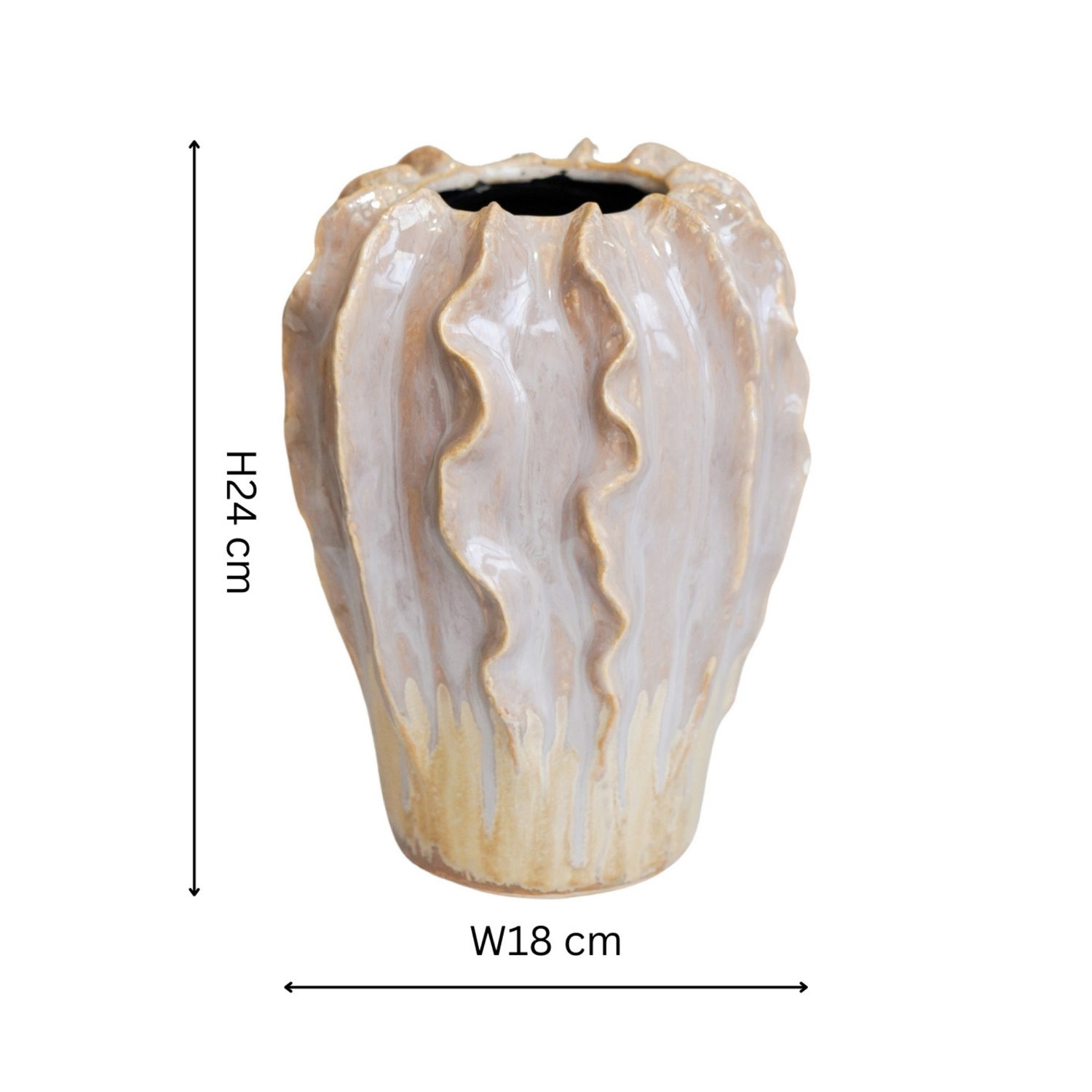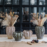 The Scarlet Reef Pink and Green Vase adds coastal elegance with its unique wave-inspired texture and lustrous pearlescent glaze. This ceramic vase shimmers beautifully, reflecting subtle hues as it catches the light, perfect for fresh or dried florals. Whether as a standalone piece or in a curated display, it brings an artistic charm to any space.