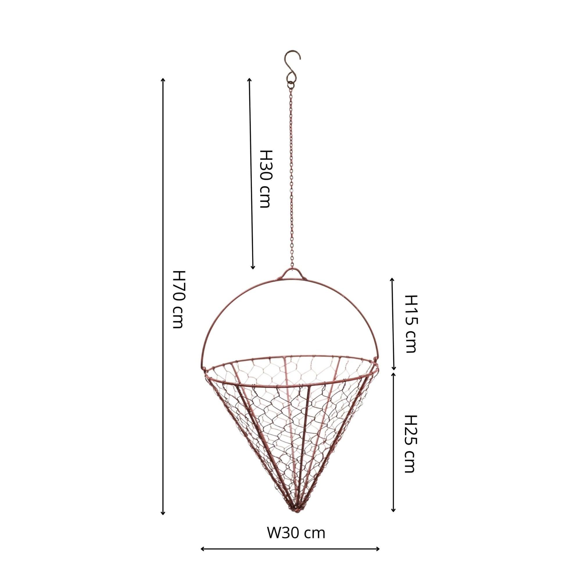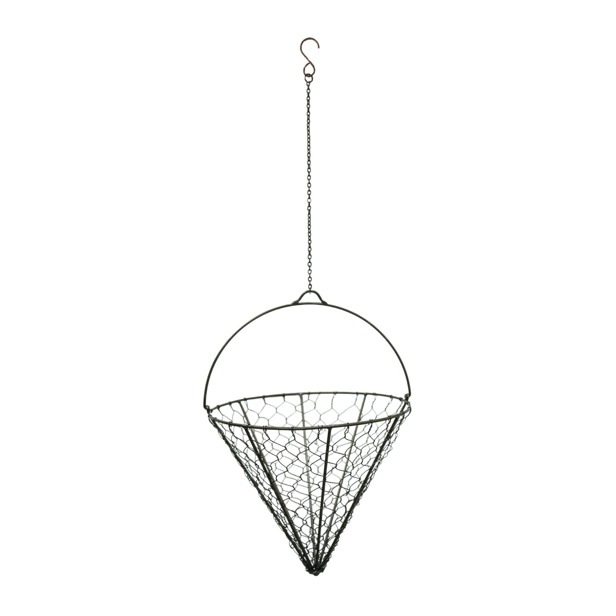 Create a beautiful floral display inside our charming hanging wired netted cone. The single chain gives the cone a pristine and unflustered look, allowing you to put your beautiful blooms in the spotlight. Handmade with an intricate wired pattern and available in both zinc and brown, this contemporary cone is destined to be graced with some stunning fuchsias or petunias to give your garden an instant lift.