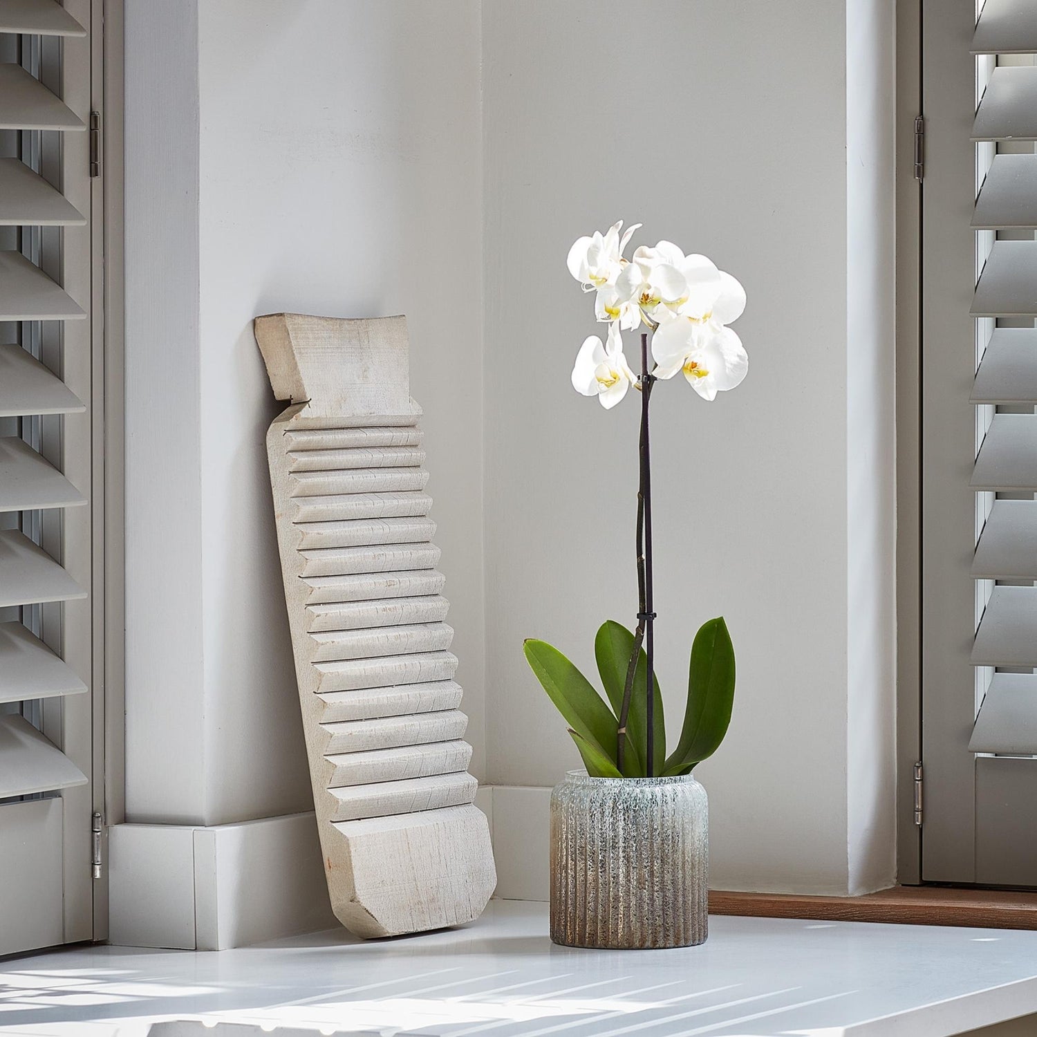 For a fresh botanical look at home, look no further than the Verre. Ribbed with a premium glaze, this waterproof planter is handmade from recycled, mouth-blown glass and guarantees a statement on your dining table, windowsill or mantelpiece. Finished with a frosted effect, it's the perfect place for your prized plants and favourite florals!