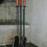 Urheilulliset, ylelliset nahkakahvat, takkaparisarjamme toimii sekä silmiinpistävänä korostuskappaleena että välttämättömänä takkana. Tämä moderni setti koostuu mattamustasta pyöreästä jalustasta, jossa on tukkipokeri, tarrain, harja ja rikkalapio. Tämä moderni setti sekä kohottaa sisätilaasi että pitää kodikkaan tulesi syttymässä. Tyyliä muiden sarjan nahkatavaroiden kanssa – nahkainen tukkipidike ja siisti settimme ovat täydellisiä aksenttikumppaneita.