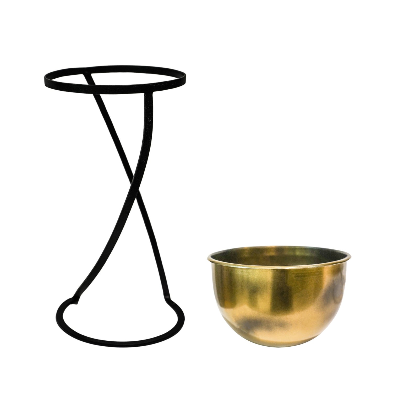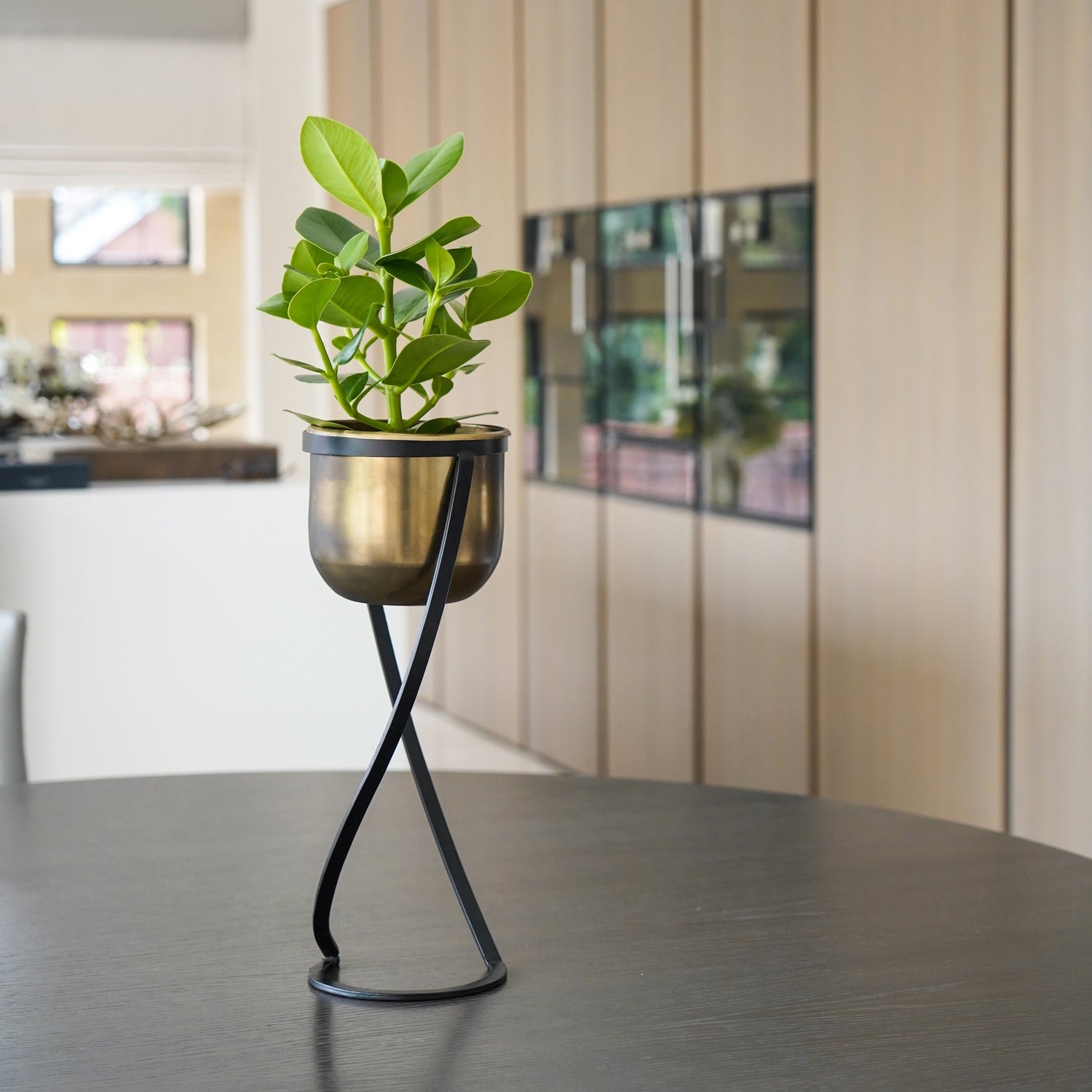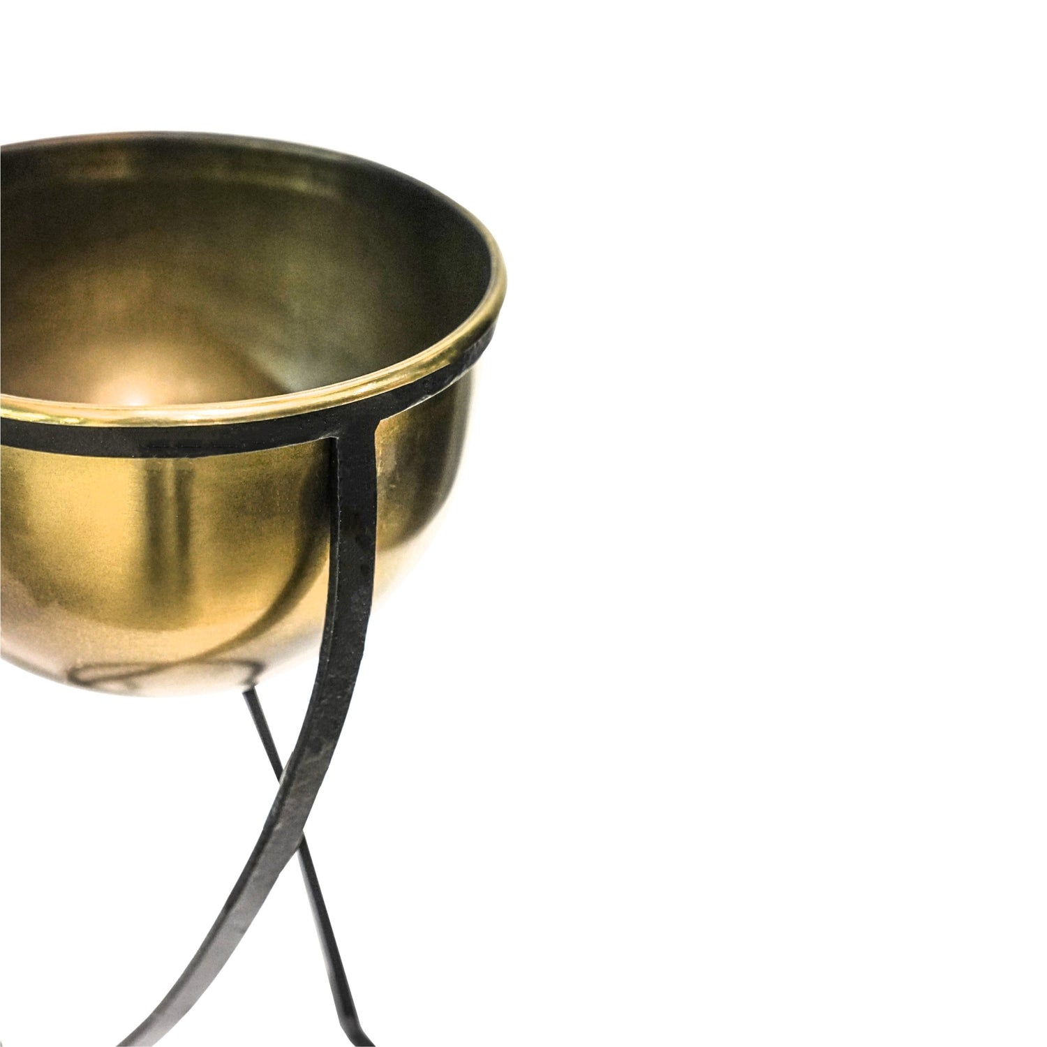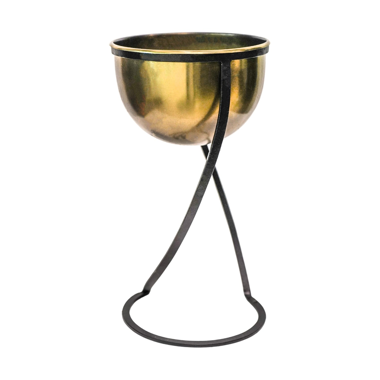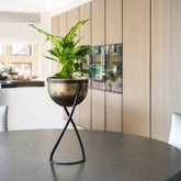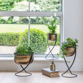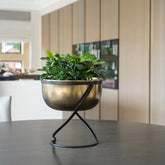 Jardinière ronde en métal sur pied Kensington en laiton