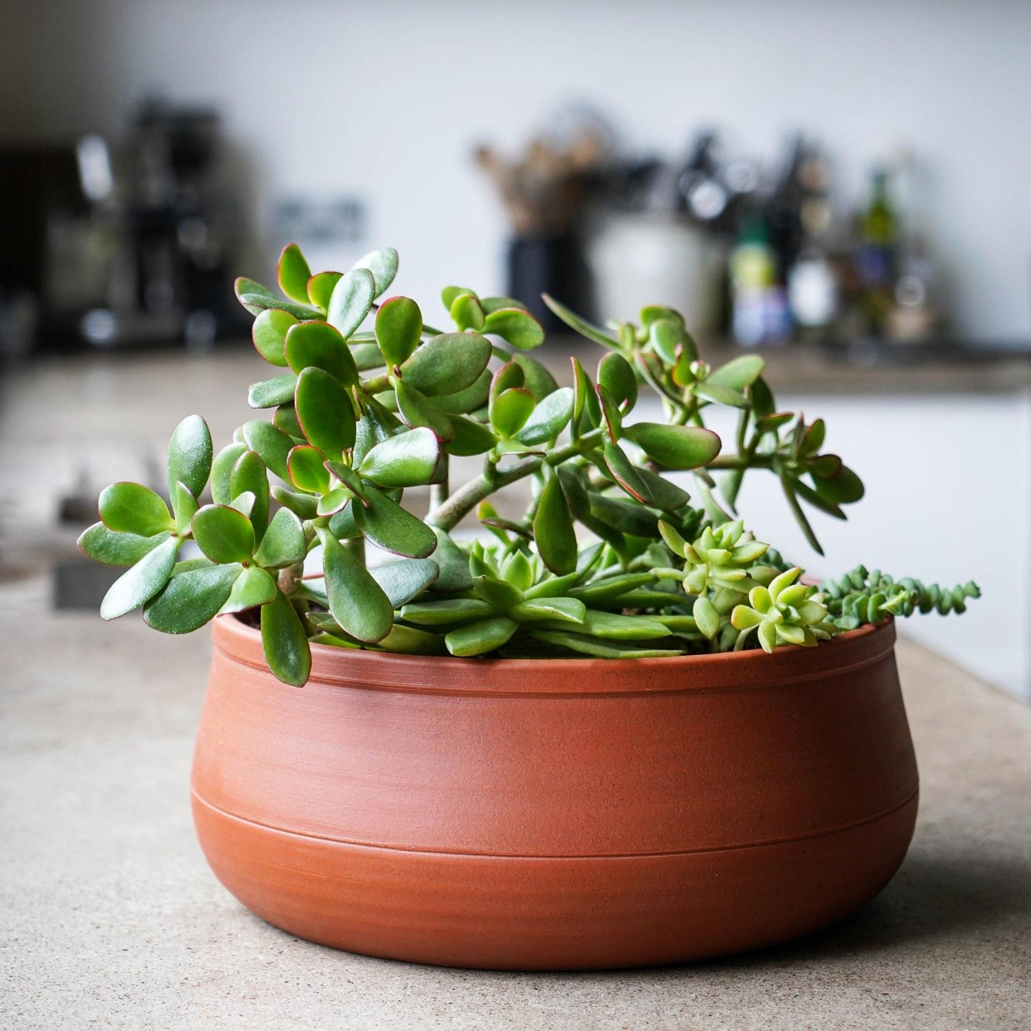 Fabriqué de manière experte dans le sud de l'Europe, notre bol en terre cuite jeté et fini à la main émet une note puissante avec sa finition haut de gamme distinctive. Ce bol en terre cuite complétera parfaitement les teintes vives de votre flore préférée.