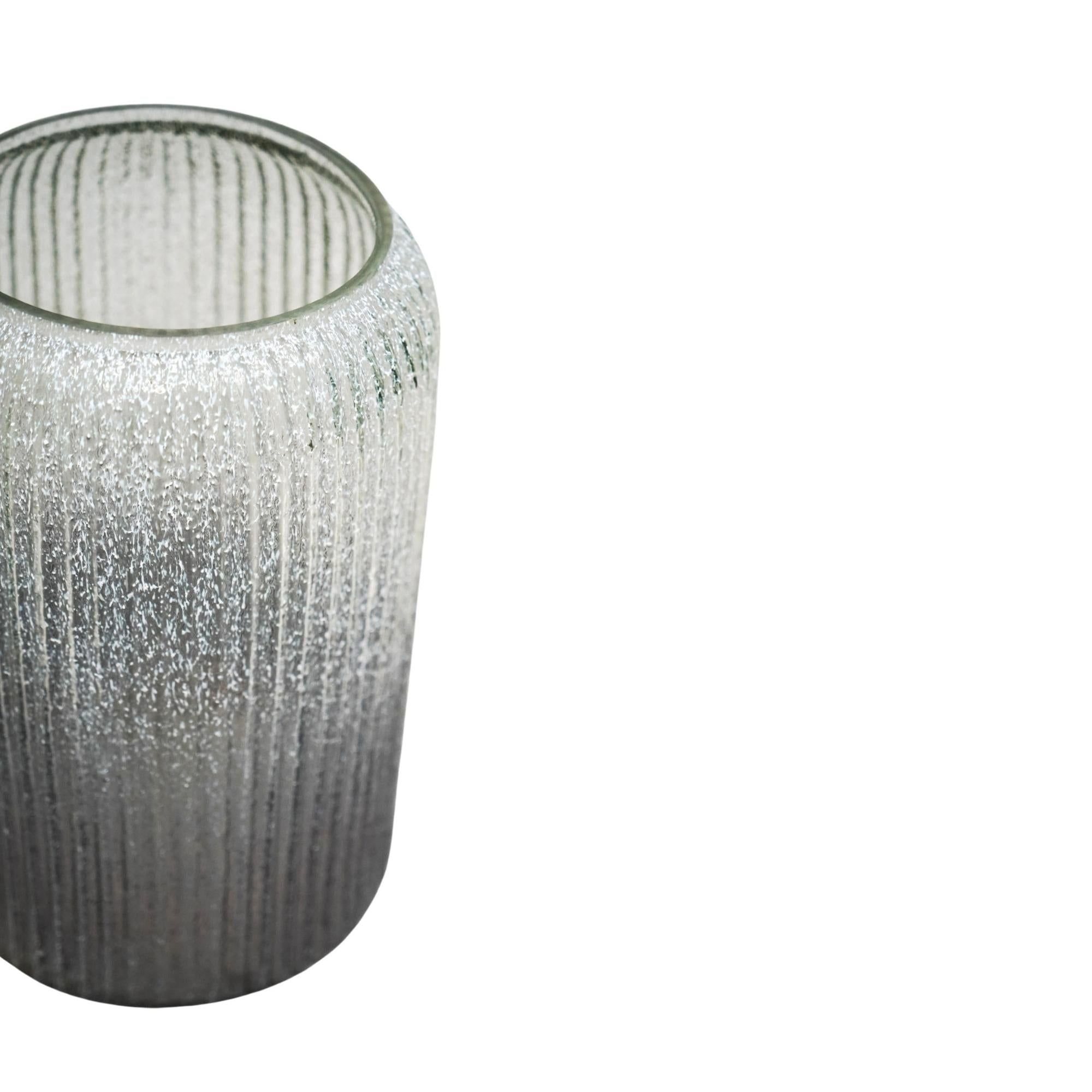 Vase en verre nervuré givré