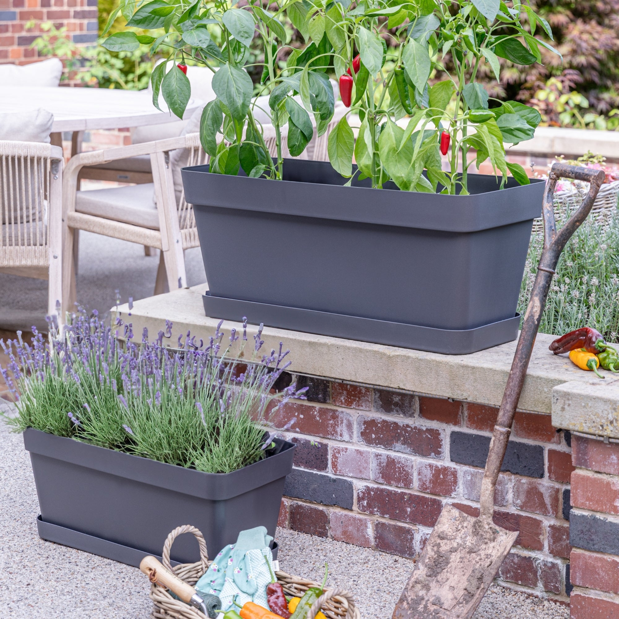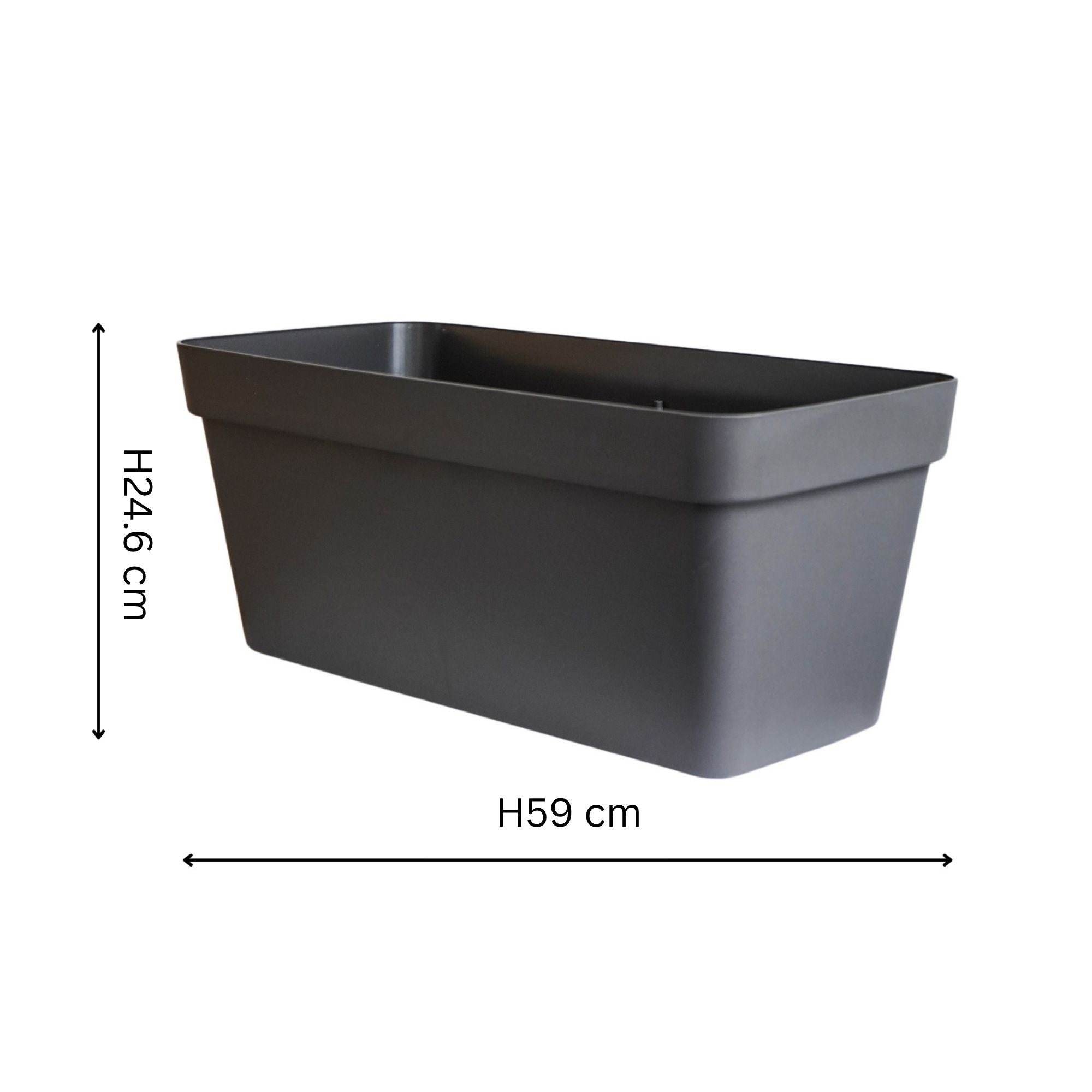 The Cleo collection of flower box planters combines convenience and sustainability, crafted in Italy from up to 100% recycled material. This lightweight, UV-stable, and frost-proof planter features wheels for easy movement and an in-built drainage system to prevent waterlogging and root rot. Ideal for versatile garden arrangements, these plastic outdoor planters offers both eco-friendly design and practical functionality for year-round outdoor use.
